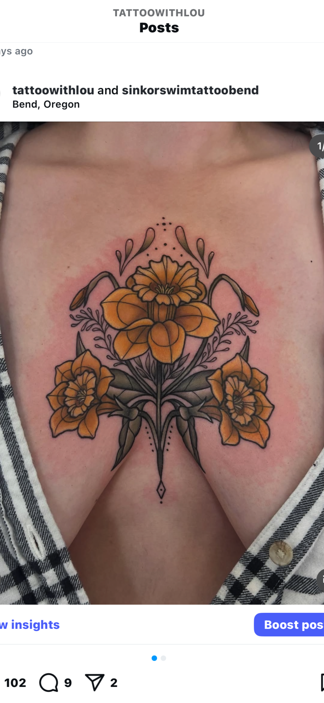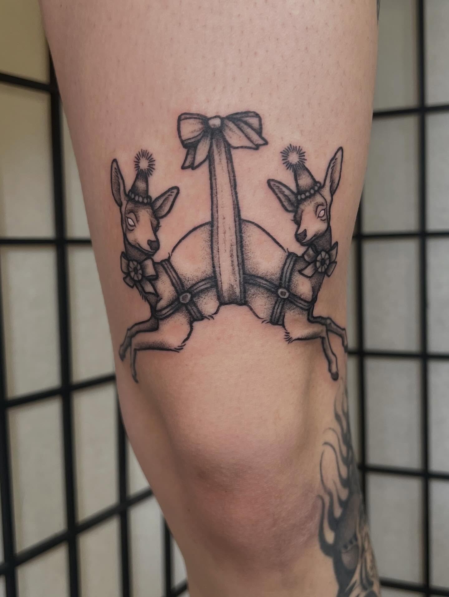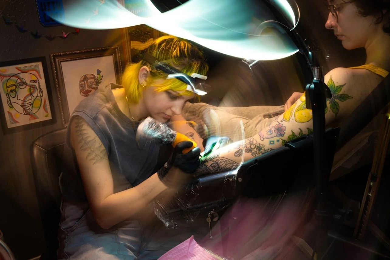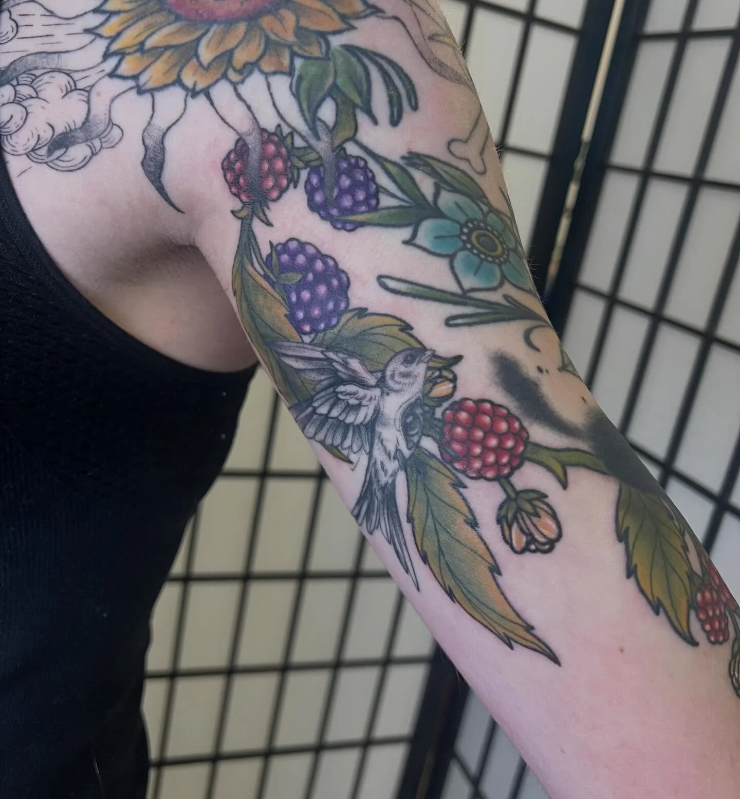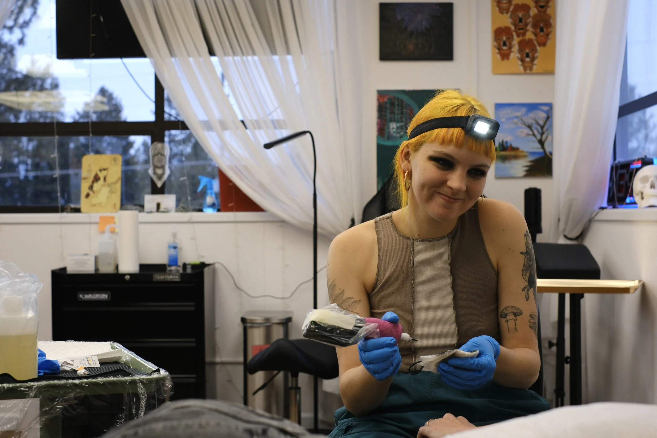 After earning my bachelor’s degree in fashion and studio arts, I moved all around the United States doing seasonal work. When I eventually settled in Bend, Oregon, I decided to dive head first into learning to tattoo.